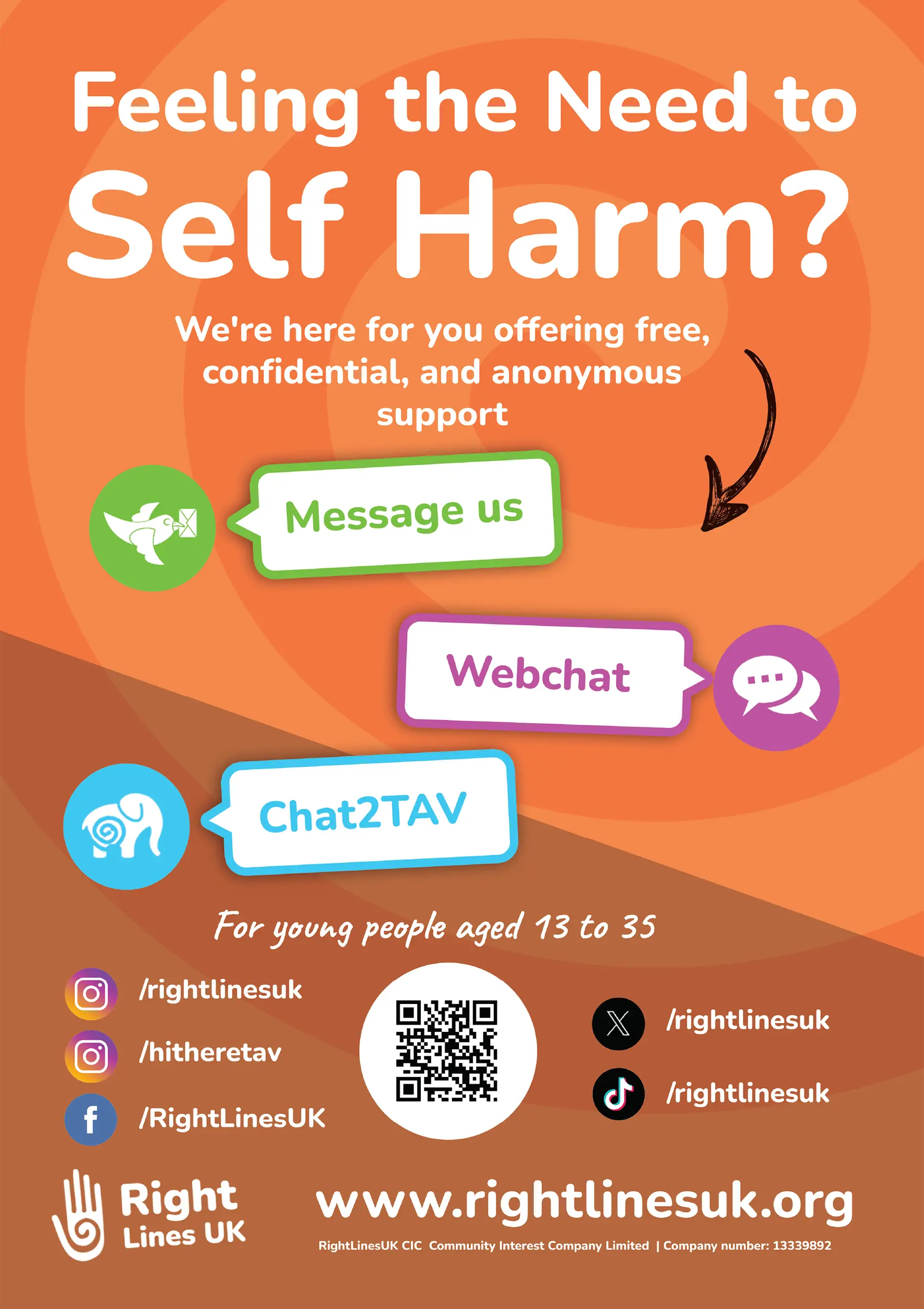 Right Lines UK is based in Lancashire, dedicated to supporting young people aged 13 to 35 who are struggling with self-harm. Through our free, confidential, and compassionate online service, we offer advice, support, and a safe space for those who may be finding things difficult to cope with.
